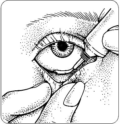 Oprima el tubo para aplicar un cordón de 1/4 a 1/2 pulgada (0.6 a 1.25 cm) de ungüento o gel en el hueco formado por el párpado inferior. Retire el dedo índice del párpado inferior.