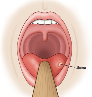 Se producen úlceras en el revestimiento de la boca. Pueden estar dentro de las mejillas o los labios, en el tejado de la boca, en la base de las encías, en la lengua o en la parte posterior de la garganta. Llagas en canker: