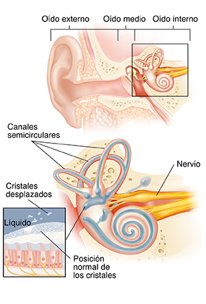 Esta es la causa más común de vértigo. El VPB también se lo conoce como “vértigo postural paroxístico benigno” (VPPB). Se produce cuando los cristales presentes en los conductos se desplazan a una posición equivocada. Los episodios suelen suceder cuando la cabeza se mueve de cierta manera; por ejemplo, al dar una vuelta en la cama, agacharse o mirar hacia arriba. Puesto que el VPB aparece rápidamente, las personas que lo sufren deben considerar si es seguro que conduzcan o que hagan otras actividades que requieren atención constante: