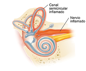 A veces, los conductos semicirculares se hinchan y envían señales de equilibrio incorrectas. Este problema puede deberse a una infección viral. Según la causa, la audición puede verse afectada (laberintitis) o bien, permanecer normal (neuronitis).