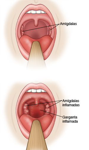 No puede abrir la boca bien debido a dolor de garganta.