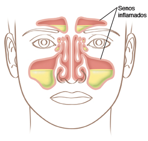 Los senos paranasales son cavidades llenas de aire en los huesos de la cara. Se conectan con la parte interna de la nariz. La sinusitis es el enrojecimiento y la hinchazón (inflamación) del tejido que recubre los senos paranasales. Esta inflamación puede presentarse durante un resfriado. También puede ocurrir debido a la alergia al polen y a otras partículas que haya en el aire. Puede causar congestión de los senos paranasales, dolor de cabeza, dolor de garganta, hinchazón de la cara y la sensación de tener la cabeza pesada. Quizás también cause algo de fiebre no muy alta. Este tipo de sinusitis no se produce por una infección bacteriana. Por eso no se usan antibióticos para tratarla.