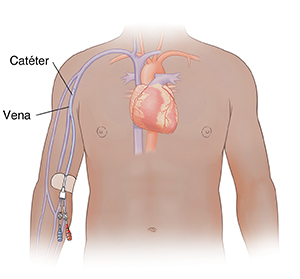 Usted ha sido enviado a casa con un catéter de línea media puesto. Esa vía es un tubo blando y pequeño que tiene colocado en una vena de la parte superior del brazo. Se usa cuando su proveedor de atención médica necesita que se administren líquidos o medicamentos por vía intravenosa, y el tratamiento durará más de unos pocos días.