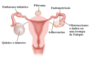 La laparoscopia permite al médico observar directamente los órganos reproductores y determinar la causa de los problemas que usted está experimentando, como dolor, sangrado o dificultad para quedar embarazada. Según cuál sea la causa, a veces es posible realizar el tratamiento durante el mismo procedimiento. Hable con su médico acerca de esta posibilidad antes de la operación. A continuación se indican las afecciones que suelen diagnosticarse y tratarse en el mismo procedimiento.
