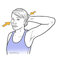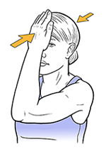 Presione la palma de la mano contra la frente. Oponga resistencia con los músculos del cuello. Siga empujando con la mano durante