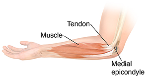 Hay varios músculos que se unen al brazo en la articulación del codo. Las fuertes bandas de tejido que unen los músculos a los huesos se llaman tendones. El hueso de la parte superior del brazo tiene unas partes salientes (prominentes) en el extremo más lejano llamadas epicóndilos. Los tendones unen algunos músculos del brazo a esas salientes. Los tejidos de esta zona pueden irritarse.