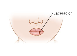 Una laceración es un corte en la piel. Si el corte está afuera del labio, quizás se cierre con puntos. Los cortes en el interior de la boca, incluso en la lengua, podrían cerrarse con puntos o dejarse abiertos, según el tamaño que tengan. Si se usan puntos en la boca, por lo general son de un material que se disuelve por sí solo.