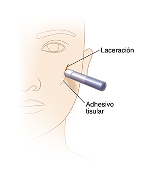 Una laceración es un corte en la piel. Le han cerrado una laceración en la cara con adhesivo cutáneo. Este adhesivo se utiliza en cortes superficiales que tienen bordes lisos que se pueden unir con facilidad y que no están infectados. El adhesivo cutáneo se puede usar en cortes rectos de zonas de la cara en las que no hay mucha tensión. En algunos casos, es posible que cierren una capa inferior de la piel con puntos antes de colocar el adhesivo cutáneo. El adhesivo cutáneo permite cerrar el corte en pocos minutos. También brinda una cubierta resistente al agua. No se necesita vendarlo. El adhesivo cutáneo se cae dentro de los 5 a 10 días.