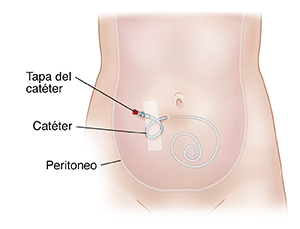 Uno de los extremos del catéter está dentro del abdomen. El otro extremo sobresale varios centímetros por un sitio de salida creado en la piel, el cual se sella con una pinza y se tapa cuando no se está utilizando.
