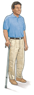 El uso adecuado del bastón aumentará su estabilidad y equilibrio mientras está caminando o parado. Debe usar el bastón en el lado contrario al de la lesión o debilidad, independientemente de cuál sea su mano dominante.