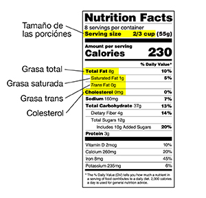 Total Fat (Grasa total). Indica cuántos gramos (g) de grasa hay en 1 porción.